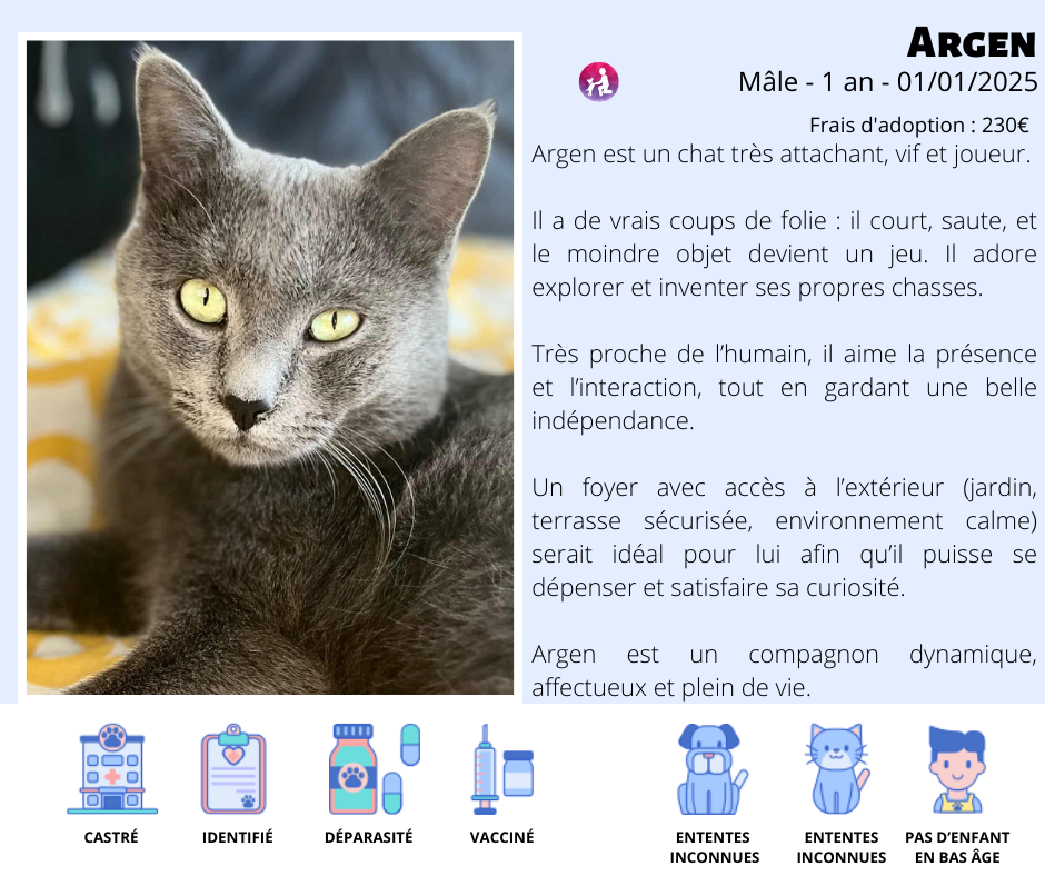 Argen est un chat très attachant, vif et joueur.