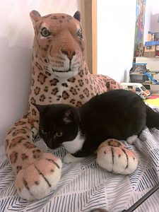 Véritable usine à ronrons, j’adore les câlins et jouer. Vous aurez d’ailleurs toute mon attention si vous agitez un plumeau devant mon nez, si c’est un enfant qui joue avec moi c’est encore mieux !”