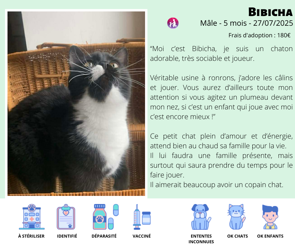 “Moi c’est Bibicha, je suis un chaton adorable, très sociable et joueur.