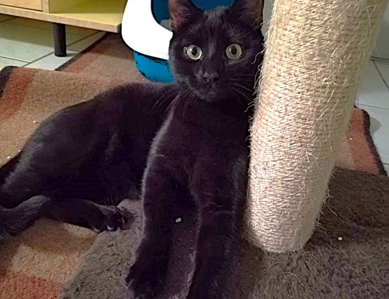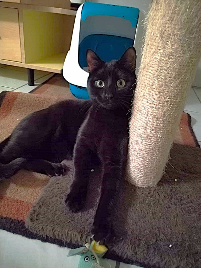 Milomi est son fils, même si il est déjà plus grand et gros qu’elle. Il promet d’être un grand chat, c’est une vraie panthère. Il aura besoin de plus de temps pour être en confiance, mais au bout de quelques jours il se laissera câliner.