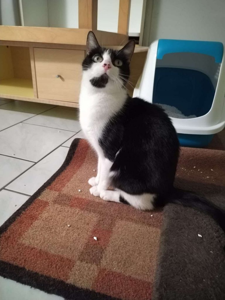 Junette (noire et blanche) est une minette ultra sociable, câline et gentille.