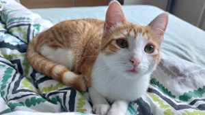 Elle a eu des soucis de santé étant petite, elle a été diagnostiquée avec de l’hypothyroïdie. C’est une pathologie encore peu décrite chez le chat mais aujourd’hui tout est stabilisé, elle conservera cependant un traitement à vie et nécessite un suivi vétérinaire régulier (2x par an).
