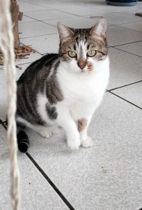 Oria est une jolie chatte de 3 ans, très vive et attachante. Proche des humains, elle a tendance à suivre dans la maison les personnes qui s’occupent d’elle, aimant rester à proximité et observer leur quotidien. Elle aime dormir sur la table à côté de son humain en télétravail, ou la nuit sur le lit au niveau des pieds.